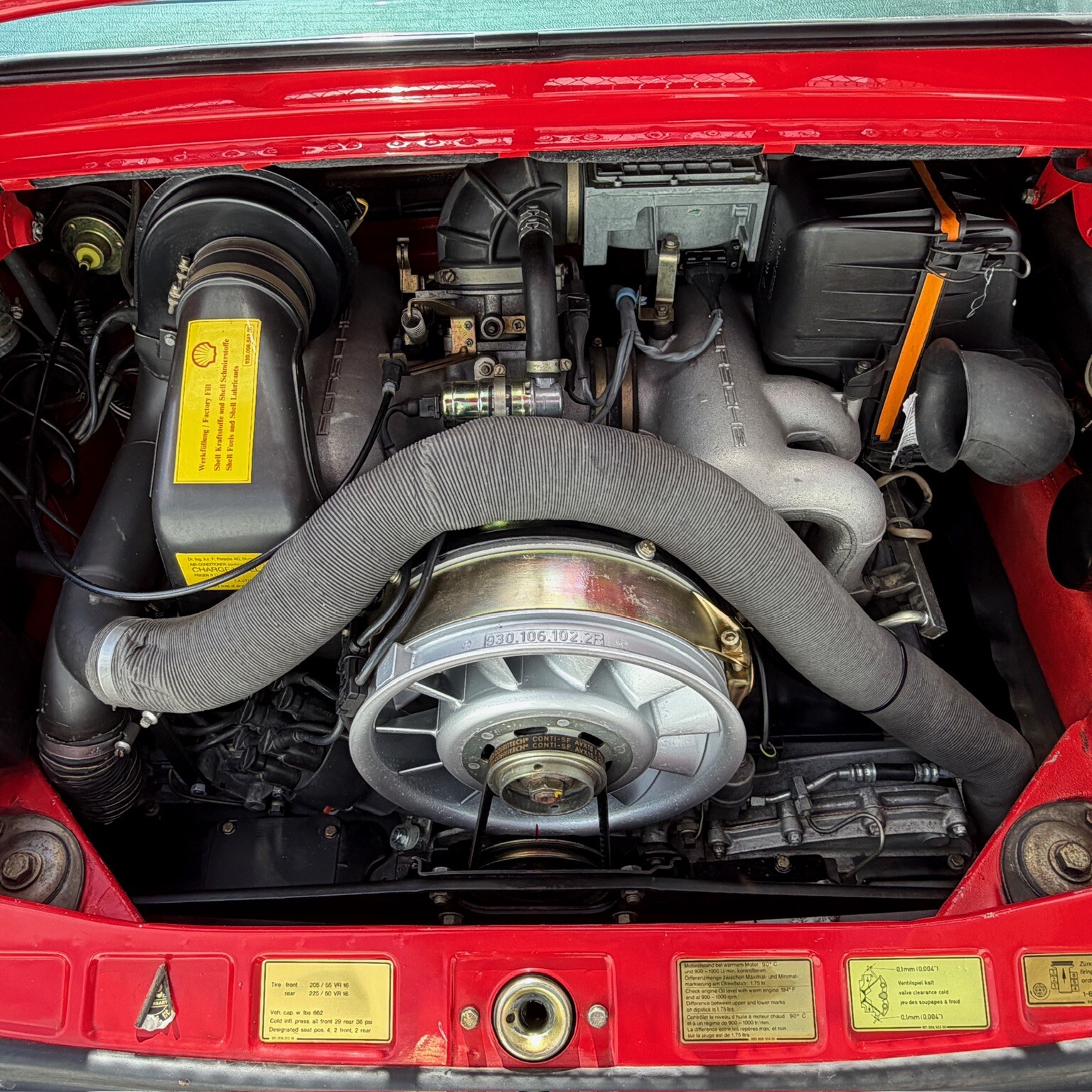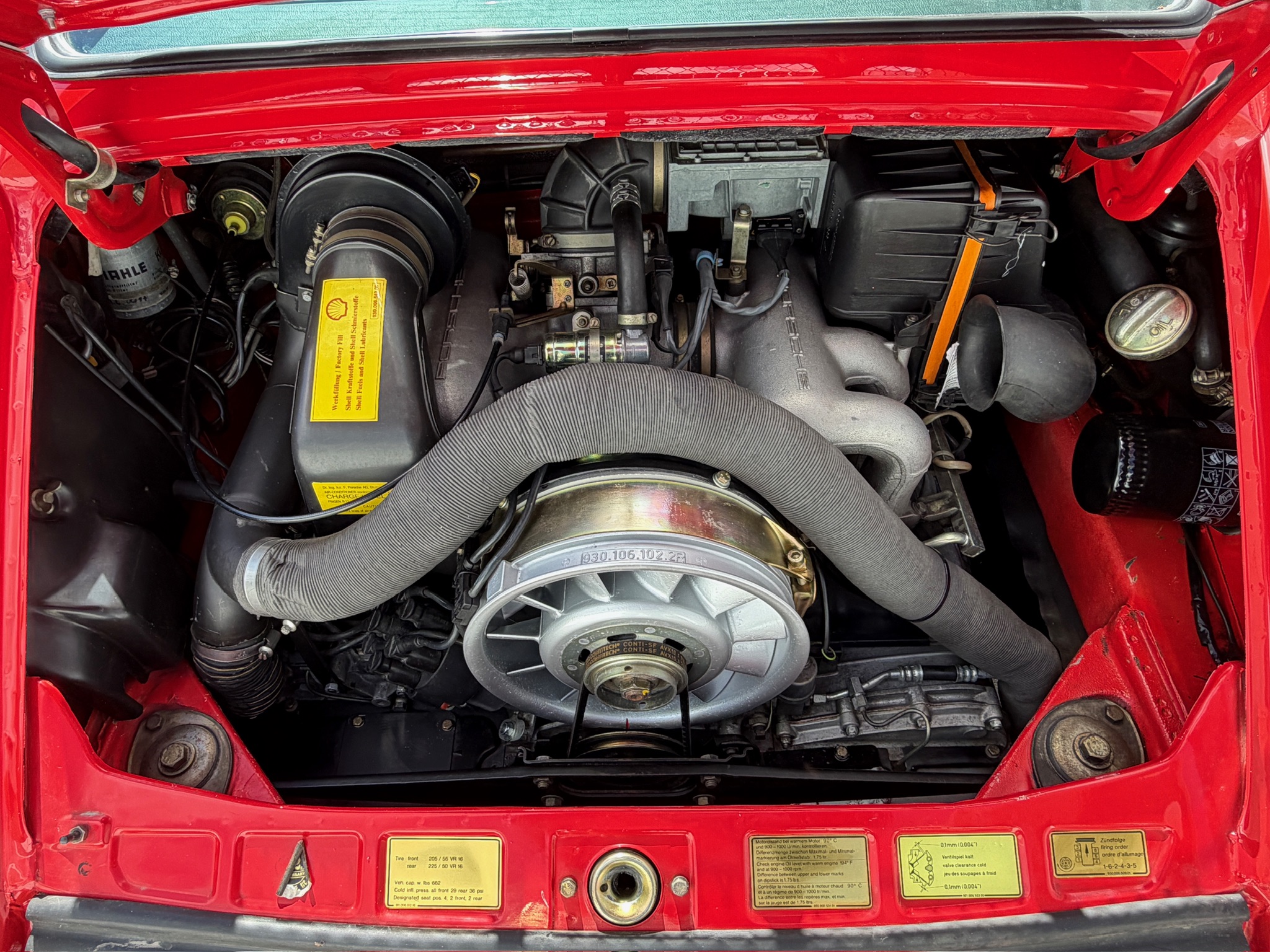 Die Codes bei Auslieferung : 650 Schiebedach, 491 WTL Werksturbolook !! 473 mit Spoilern 454 Tempomat 409 Sportsitze linke und rechts 158 Radio Monterey C02 Auslieferung USA, Farbcode L027 Guards / Indian red